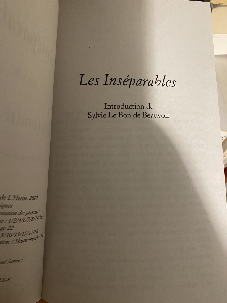Les Inséparables est un récit autobiographique dans lequel la philosophe Simone de Beauvoir, à travers une réalité fictionnelle revient sur sa relation avec son amie d’enfance qui lui a apporté de la joie, du bonheur et une influence intellectuelle, contribuant ainsi à son éveil intellectuel. Plus qu’une amie d’enfance, Andrée/Zaza est vénérée par Simone de Beauvoir pour sa vivacité d’esprit, son intelligence, et son franc parler qui l’amuse. « S’adapter » tel est le mot de Zaza prononcer à plusieurs reprises pour lutter contre un conformisme bourgeois d’origine familiale. Sa mort tragique suscite l’incompréhension de Simone et restera un mystère, cette jeune fille meurt déchirée dans des conflits de conscience, atteinte d’une encéphalite virale.